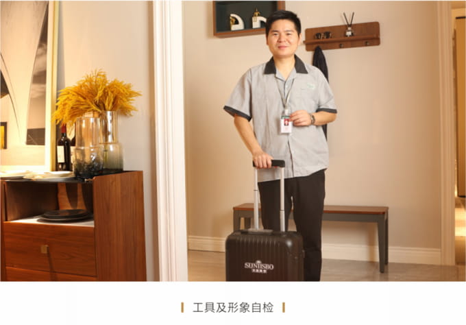 產(chǎn)品處理完畢后必須一站式通檢,指導(dǎo)客戶使用,并將服務(wù)過(guò)程中產(chǎn)生的垃圾隨手帶走,家具維修完畢后,應(yīng)用毛巾將家具擦拭一遍,確保產(chǎn)品清潔。