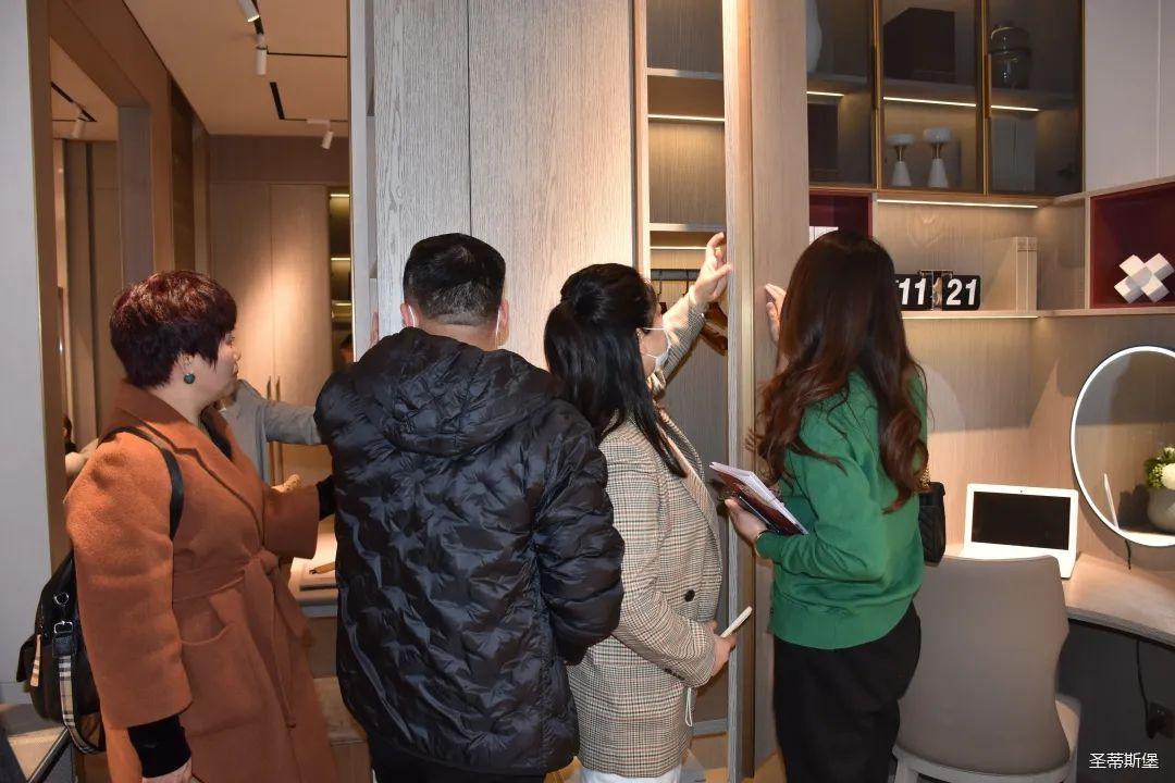 展廳內(nèi),專業(yè)的導(dǎo)師為嘉賓們?cè)敿?xì)介紹了產(chǎn)品工藝特點(diǎn)、整體造型特色、裝飾元素以及色彩搭配等;還有全屋定制、固裝、營(yíng)銷等部門(mén)高管,與經(jīng)銷商熱情的交流溝通,并為大家講述了圣蒂斯堡的原創(chuàng)設(shè)計(jì)理念。“洛斯”主打的差異化輕奢,更是贏得了在場(chǎng)經(jīng)銷商家人的高度贊譽(yù);圣蒂斯堡用實(shí)際行動(dòng)證明了在家居界不可比擬的產(chǎn)品優(yōu)勢(shì)和實(shí)力。