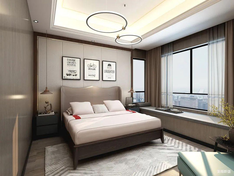 臥室精簡(jiǎn)有致,從質(zhì)感出發(fā),打造由內(nèi)而外的優(yōu)雅奢華感。背景墻、地板、地毯均擁有較強(qiáng)的肌理感,在加上金屬軟裝飾物調(diào)和,讓空間在低調(diào)內(nèi)斂的基礎(chǔ)上又不失時(shí)尚的高級(jí)感,飄窗進(jìn)階為溫馨的一角,閑暇時(shí),則可倚窗而坐,品一杯紅酒,感受生活中的愜意時(shí)光。
