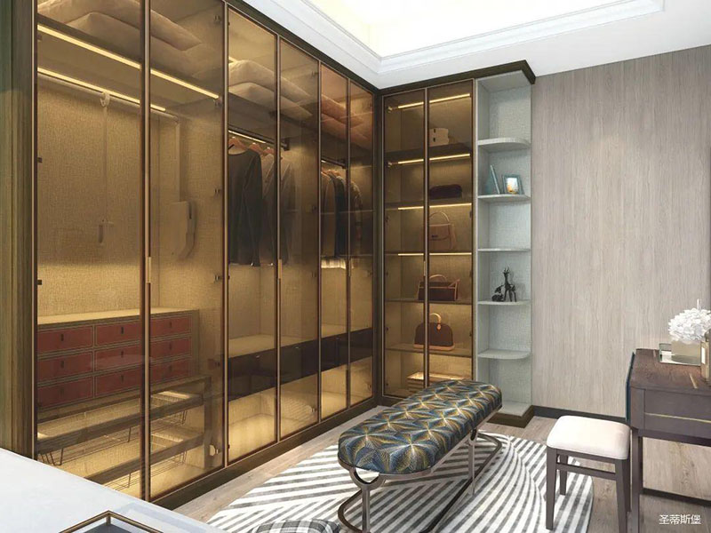 衣帽間開(kāi)放式置頂設(shè)計(jì),在追求簡(jiǎn)單到極致的基礎(chǔ)上,給人感官一種簡(jiǎn)約整潔的整體感受。打破常規(guī)的空間儲(chǔ)藏方式,脫離一切浮華與不實(shí)用,僅用最簡(jiǎn)單的線條反映出主人優(yōu)雅的高品味。