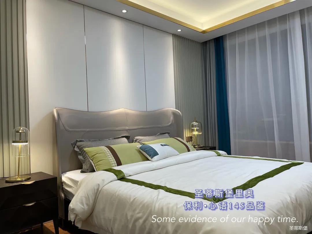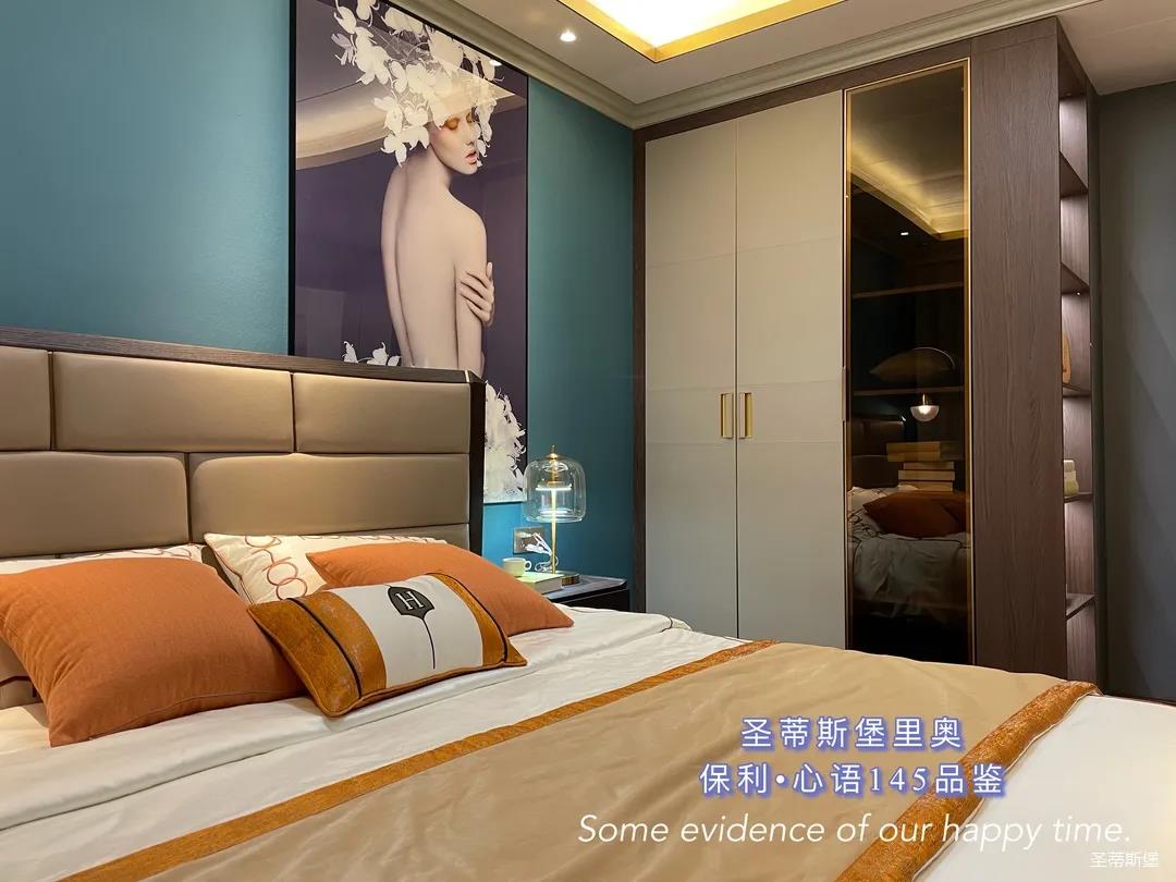 ▲床屏簡約的線條與定制柜的功能設(shè)置讓貼墻的藝術(shù)掛畫,散發(fā)出優(yōu)雅而大膽的美感。