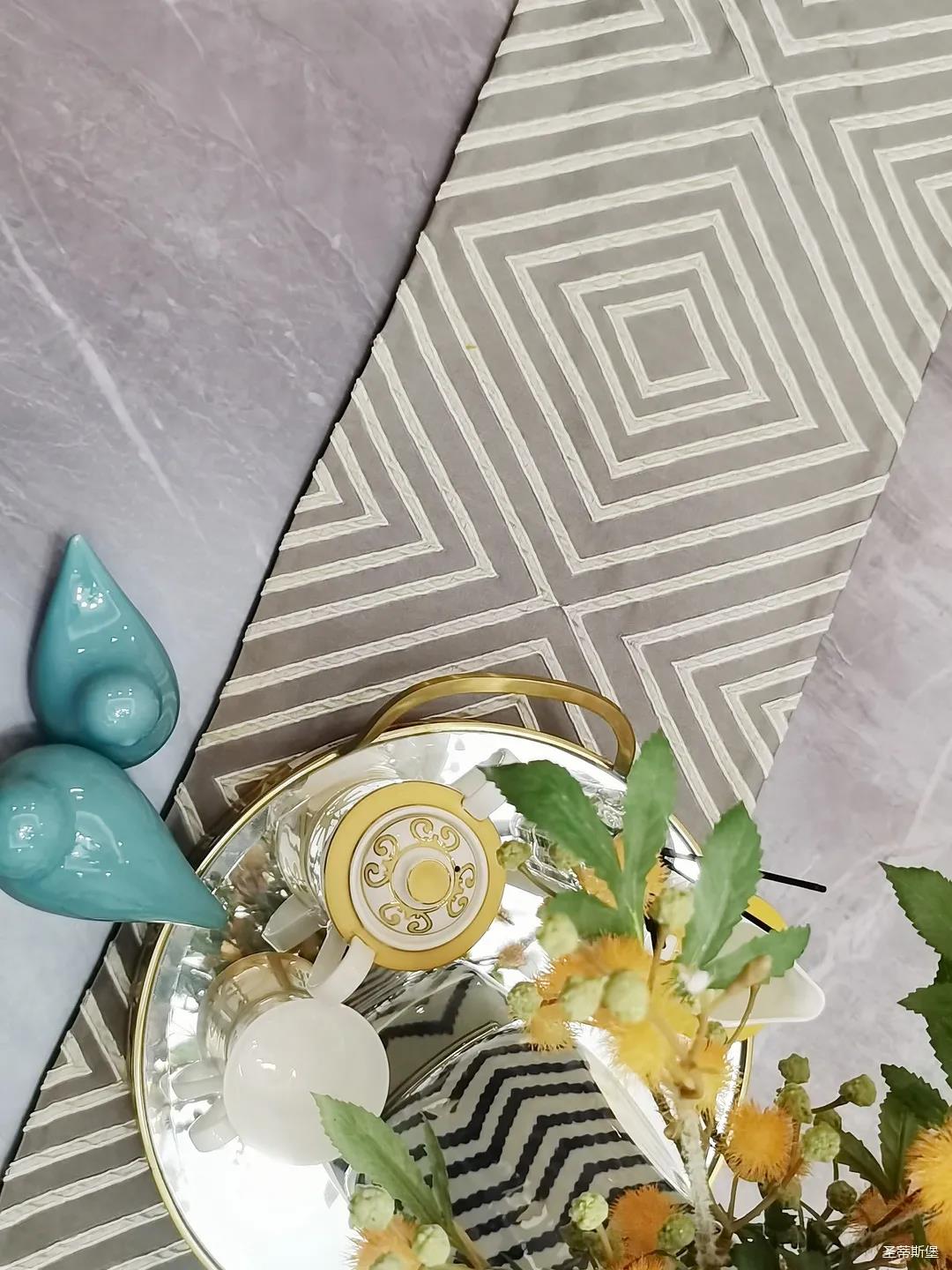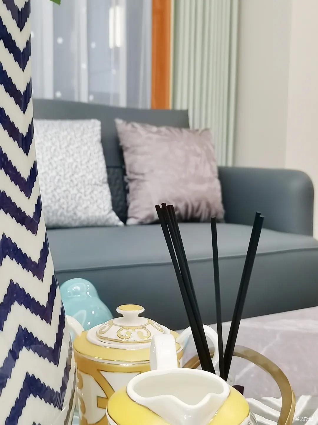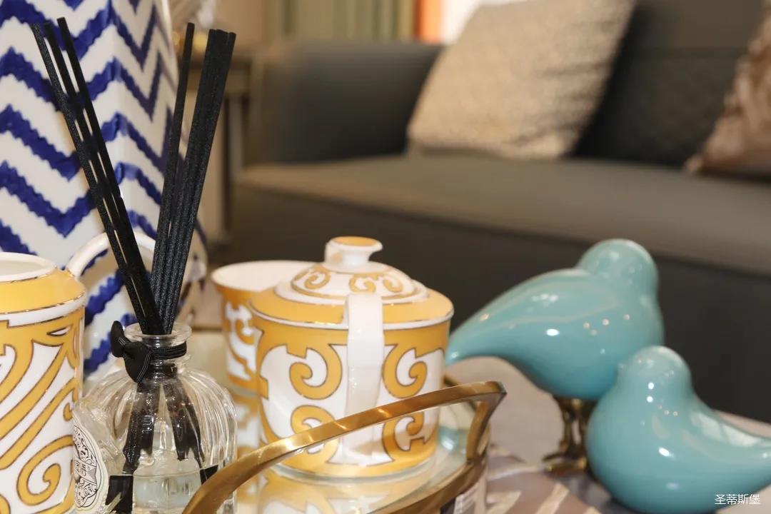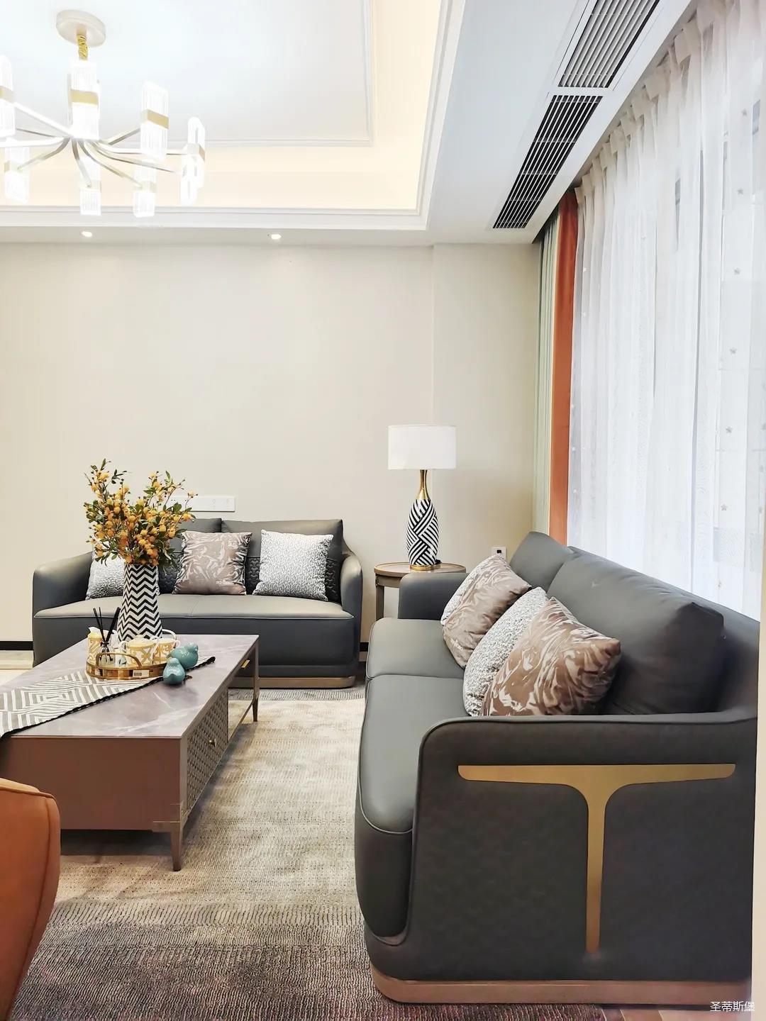 淺灰為基底的飾面與低飽和度的深色沙發(fā)相互映襯,產生強烈的視覺沖擊,深色的家具讓空間從視覺上衍生出一種縱深感。巖玻的質感與真皮編織的紋理盡顯現代之美,細節(jié)陶瓷擺件注滿了空間優(yōu)雅的藝術氛圍。