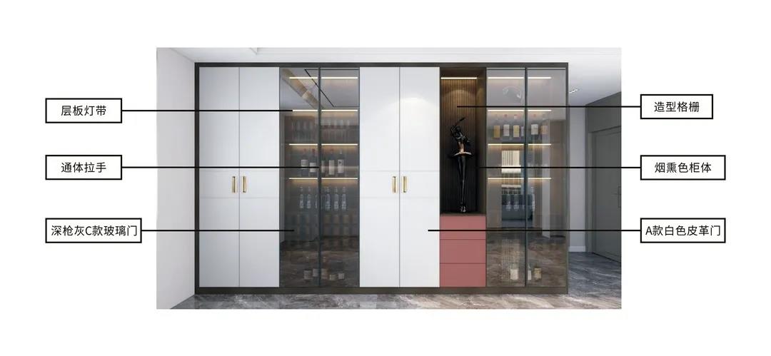 標(biāo)配門型:A款皮革門、鋁框玻璃門、超級膚感門