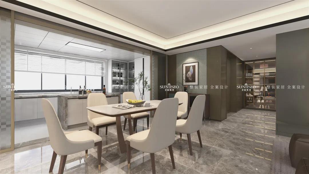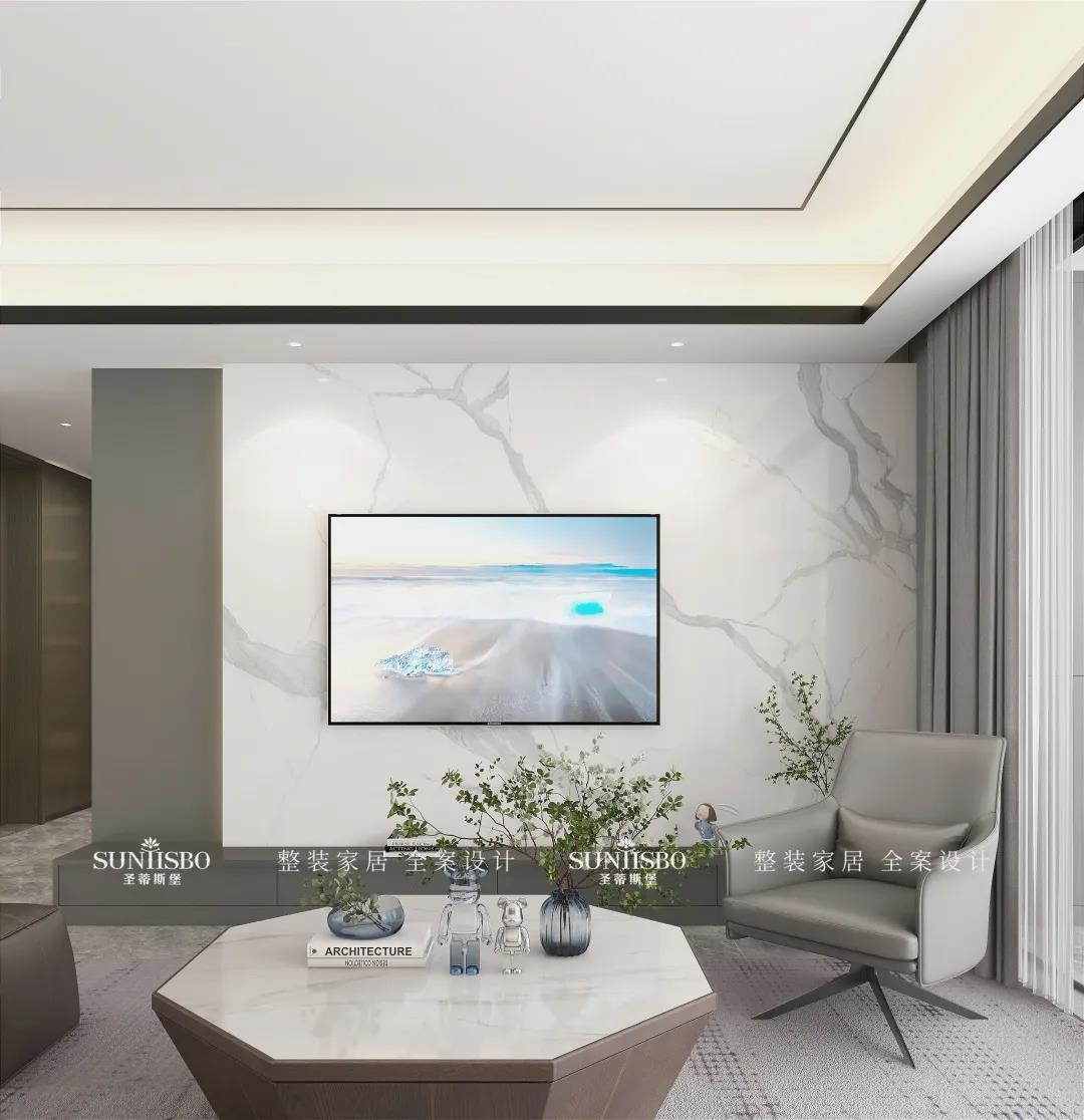 客廳根據(jù)業(yè)主太太的喜好而設(shè)計(jì),茶幾采用純天然爵士白大理石,自然天成的石材紋理,通過留白的藝術(shù)表現(xiàn)手法,營造出自然靈動、沉穩(wěn)時尚的意境。從細(xì)節(jié)處彰顯對生活的態(tài)度與追求,打造高品位的現(xiàn)代家居。