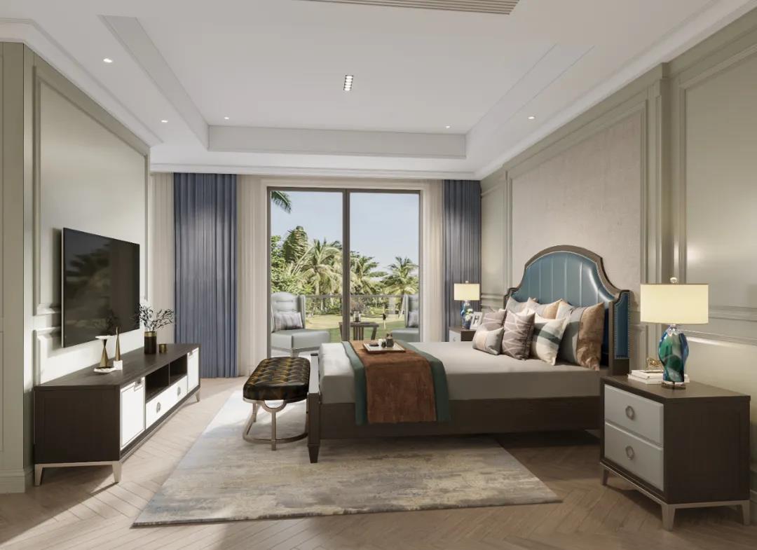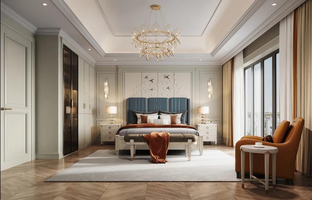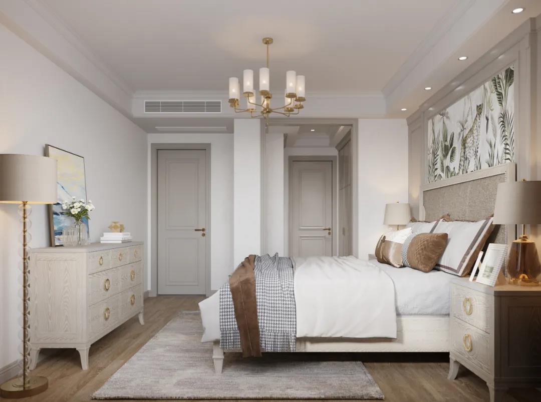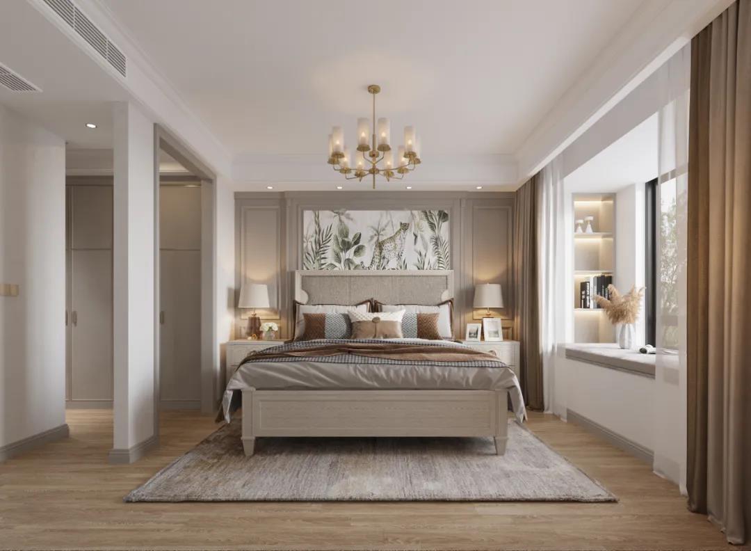 主臥以線條元素做主導(dǎo),軟包的床頭墻面充滿安全感,浮雕的造型給空間布局帶來了極佳的層次感,以現(xiàn)代美式輕奢框架為主題,融入了美式靈動的線條,讓整個臥室既有時(shí)尚質(zhì)感,又有時(shí)光打磨后的穩(wěn)重。